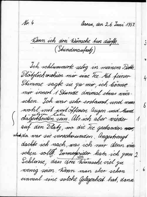 Drei Wünsche hiess der Titel des Aufsatzes. Ich war damals in der dritten Klasse der Bezirksschule. In unserer Klasse befand sich auch ein Flüchtling aus Ungarn. Er hatte Mühe mit der deutschen Sprache und wurde deshalb an der Kantonsschule nicht zugelassen. Er war stark, imponierte uns, aber gehörte mit seinem Hintergrund nicht in unsere Kinderwelt.