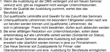 In diesem Zusammenhang sei auch auf allfällige Bedenken seitens der jetzigen Seminarlehrerinnen eingegangen.