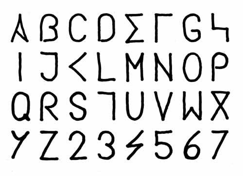 Ich war ans Bett gebunden, konnte den rechten Arm nicht mehr bewegen, wollte Kreuzworträtsel lösen gegen Lange Weile - so entstand die Imolit-Schrift. Beim Schreiben wird bei jedem einzelnen Buchstaben nur einmal angesetzt. Sie kann daher auch in der Dunkelheit oder mit der ungeübten Hand geschrieben werden.
