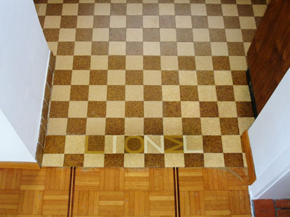Bei einem Mauerdurchbruch Küche/Esszimmer fehlten die alten Fliesen und waren nicht mehr erhältlich. Der Boden wurde neu gegossen und darauf die "Plättli" gemalt. Der Unterschied geriet so unauffällig, dass mit "LIONEL" die Aufmerksamkeit wieder darauf gerichtet wurde.