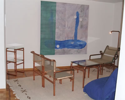 Mobil art : Clubtisch, Clubstühle, Rack und Grosi-Liege mit Leselampe